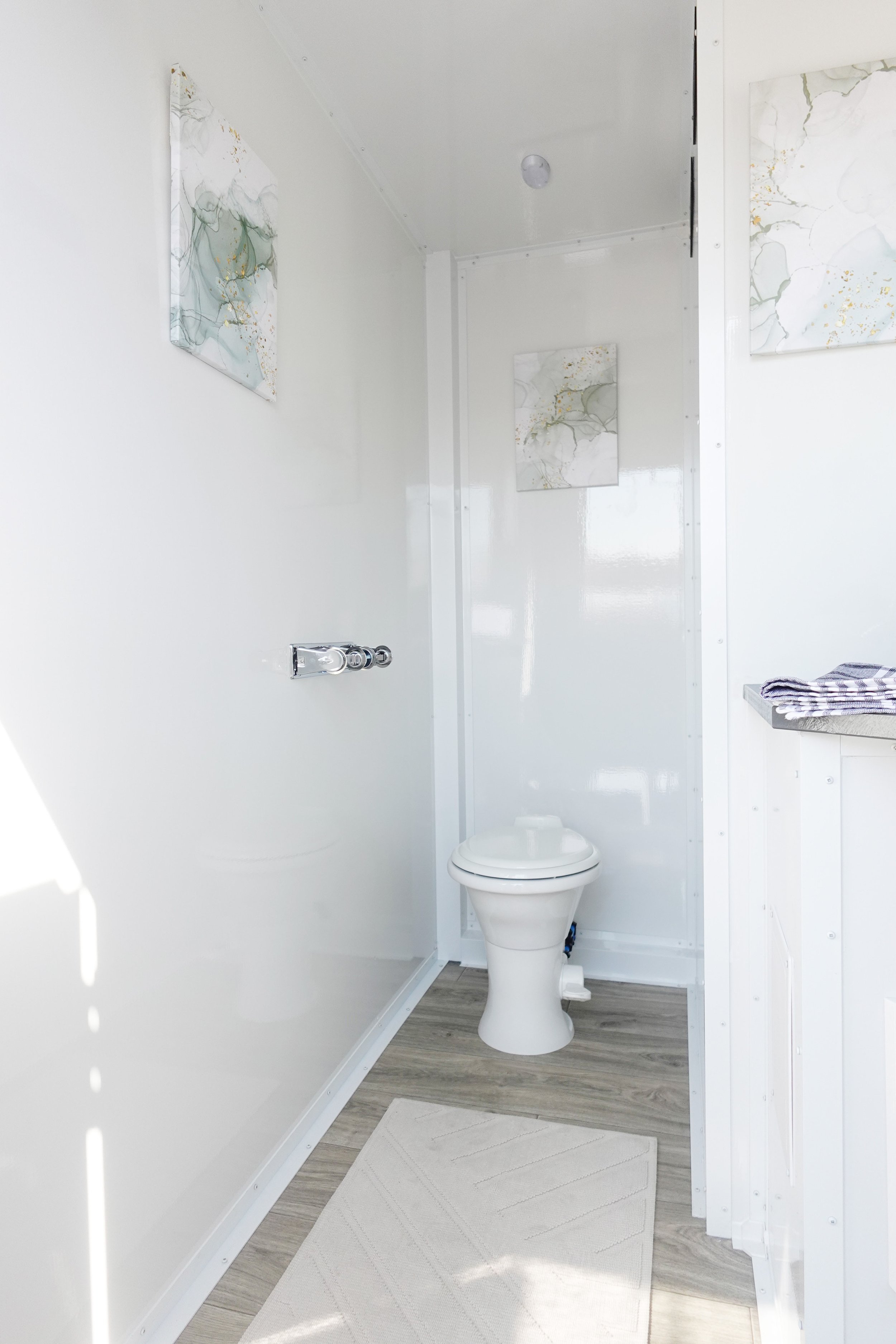 The 2 Stall ECO restroom trailer is a compact solution designed for smaller gatherings and sites where space is limited. Its streamlined design allows for easy placement while still providing a comfortable and private restroom experience.